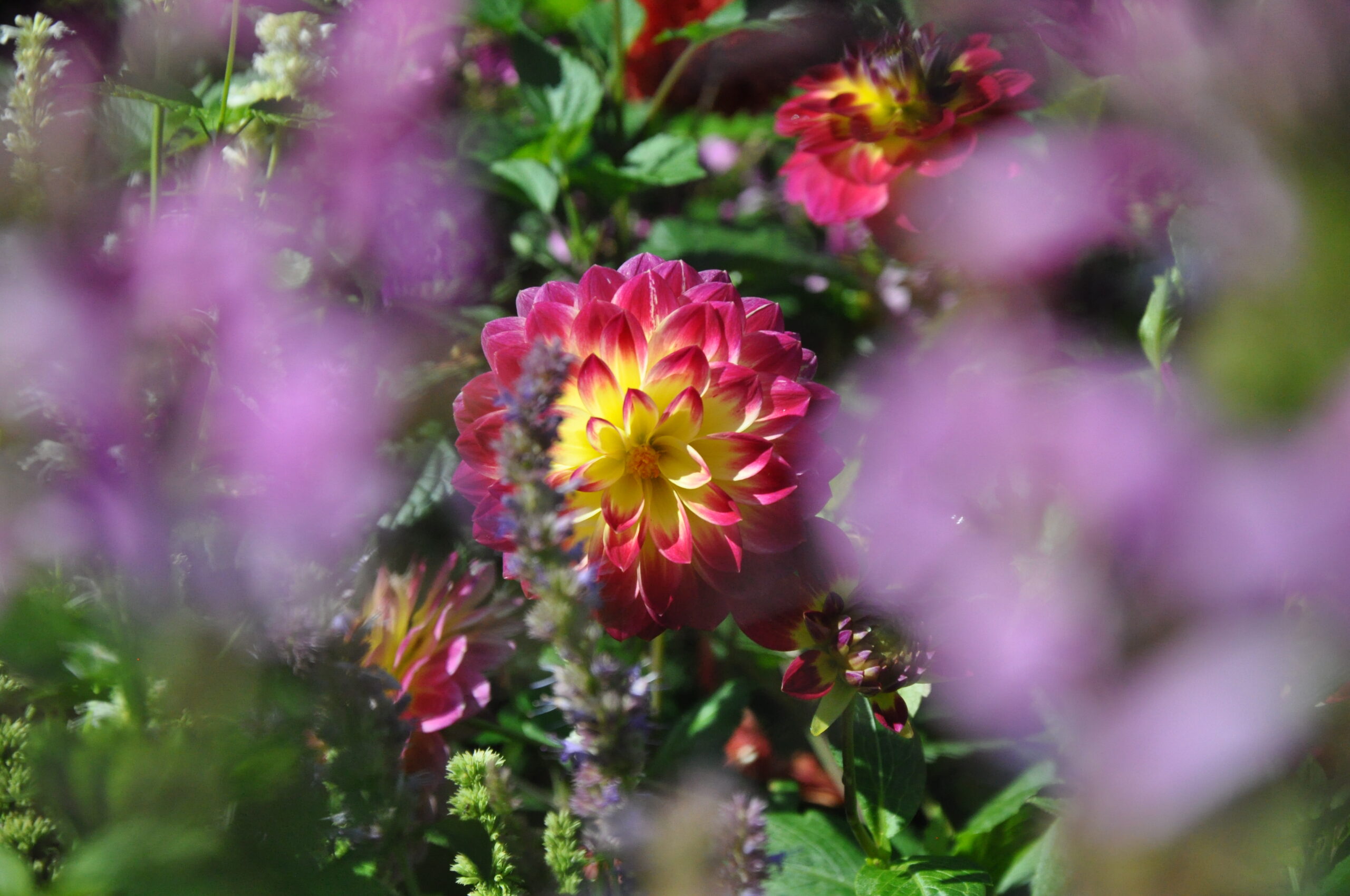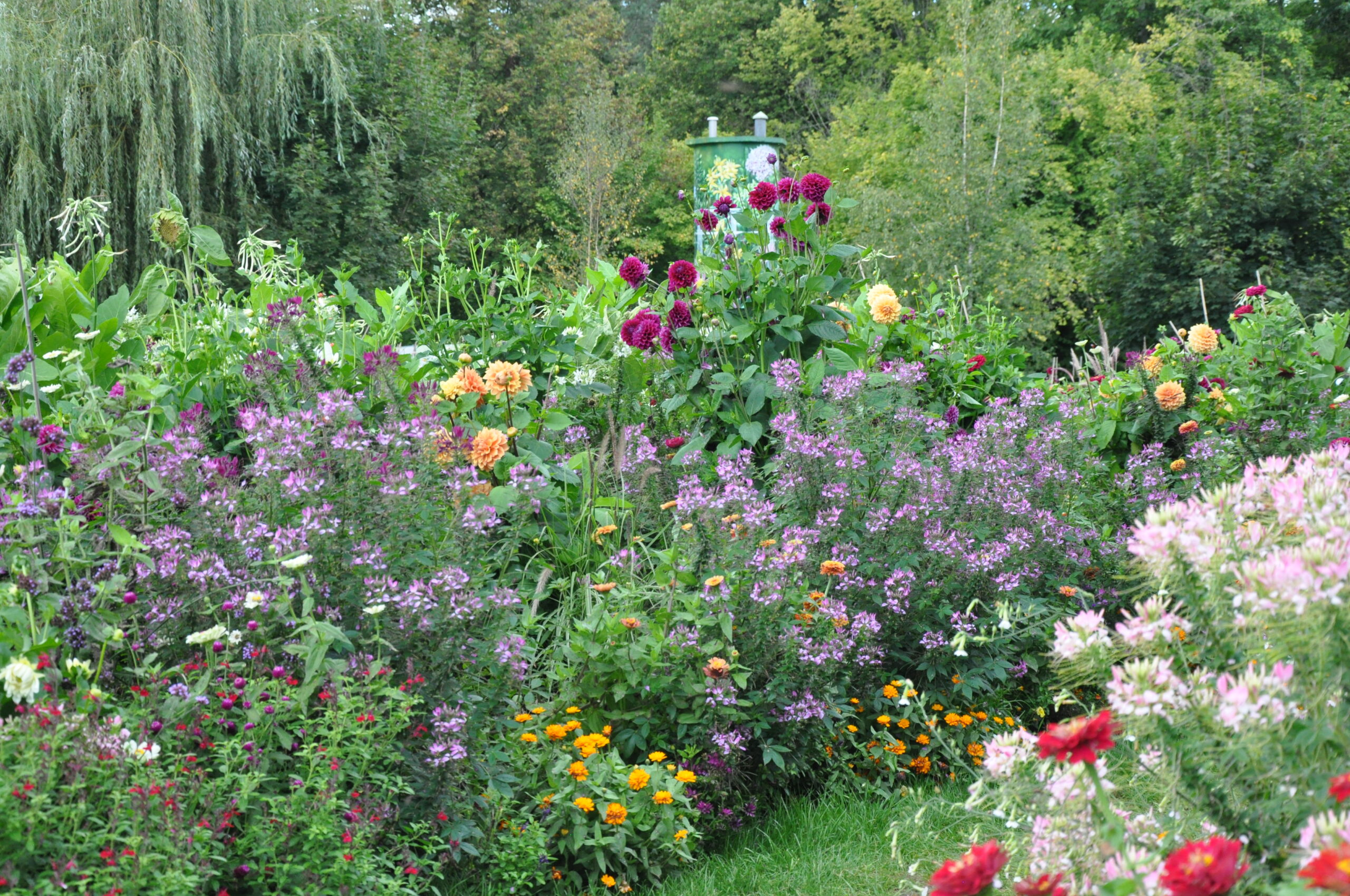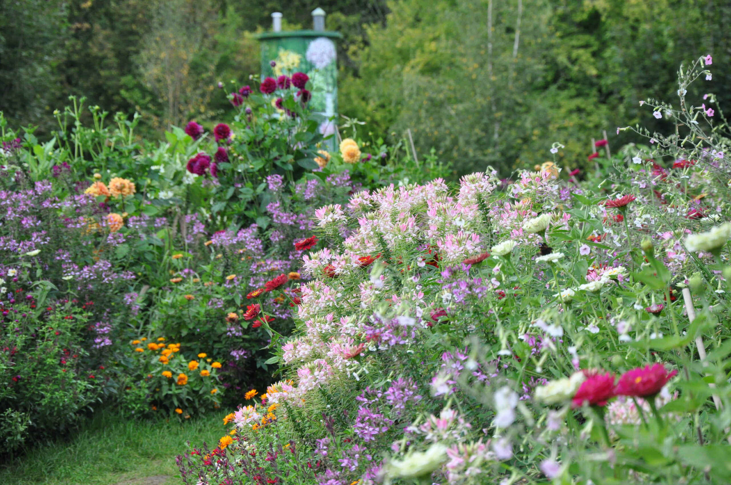 Ein bunter Mix aus Dahlien, Spinnenblumen, Zinnien und Ziertabak.